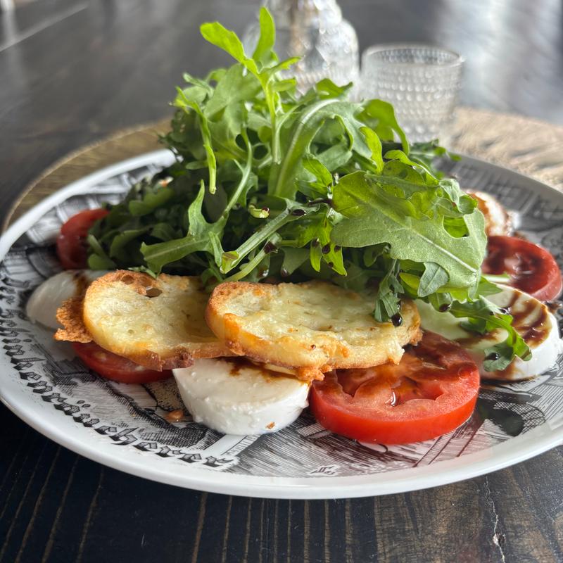 Our take on a caprese style salad, with roma tomato, bocconcini, rocket and balsamic drizzle